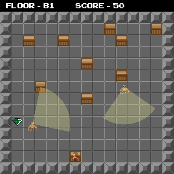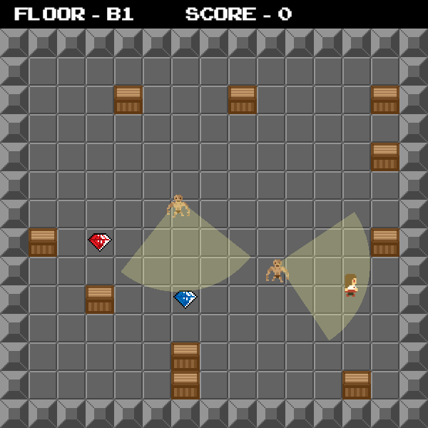 Once the player collects all the gems on a floor, a staircase is revealed that allows them to descend to the next floor.