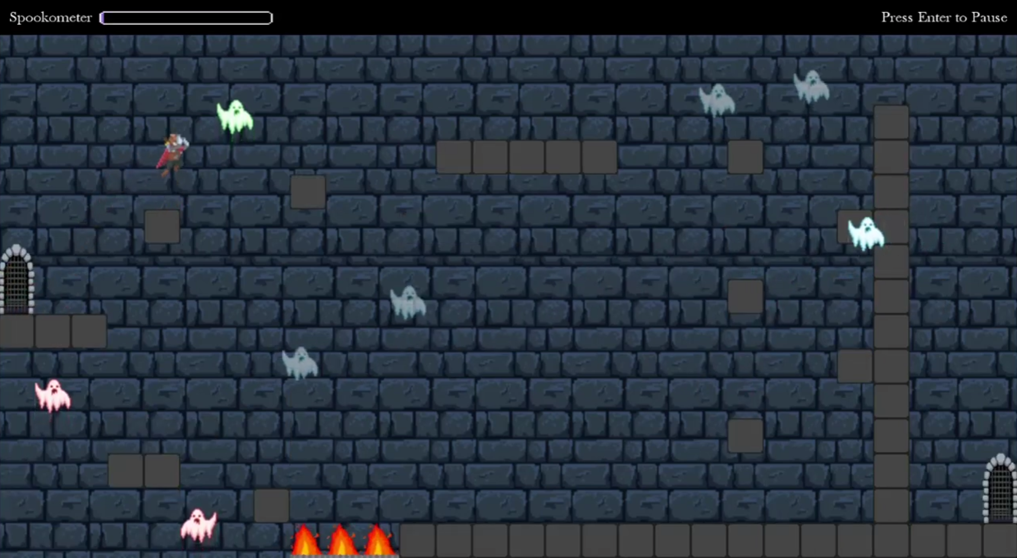 Spooked is a short, 2D platformer that tasks the player with defeating ghosts in order to escape from a haunted castle.