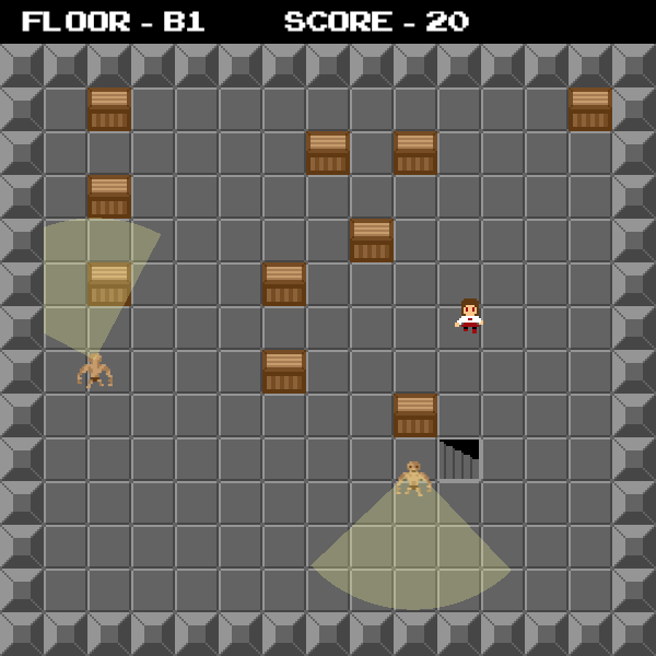 If a monster sees the player, it will begin to chase them until they hide in one of the crates around the room.