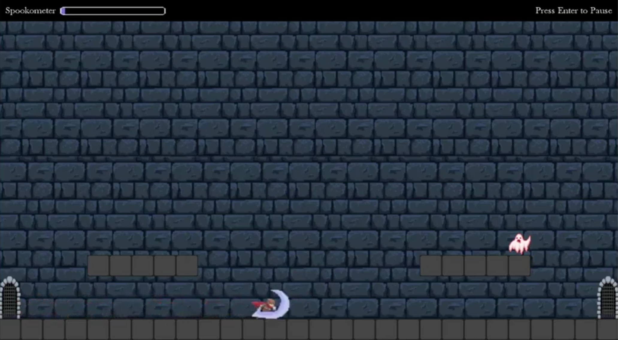 Spooked is a short, 2D platformer that tasks the player with defeating ghosts in order to escape from a haunted castle.